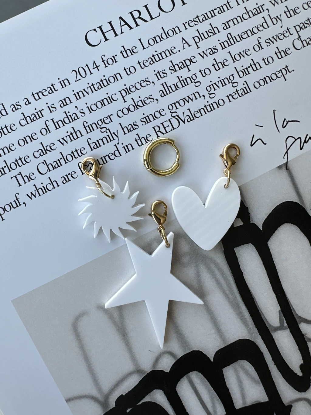 Par de aros dorados con dije acrilico a eleccion (estrella, sol, corazon).