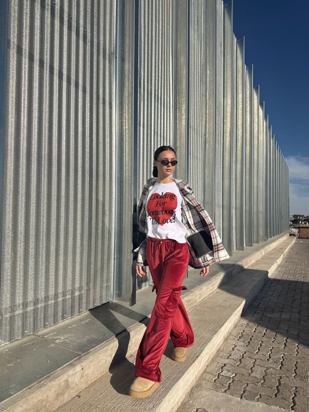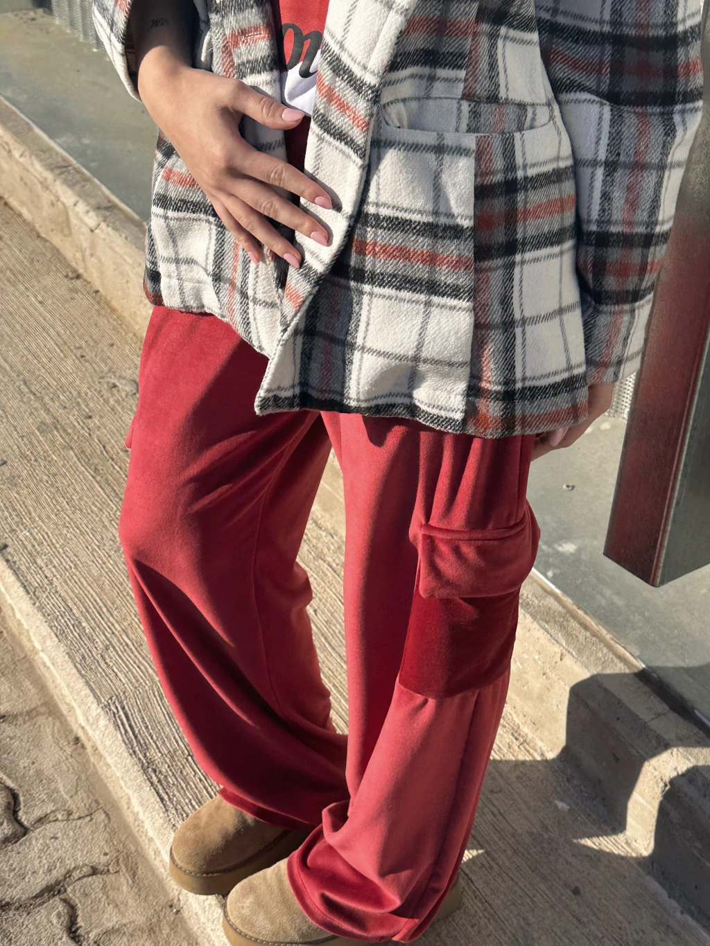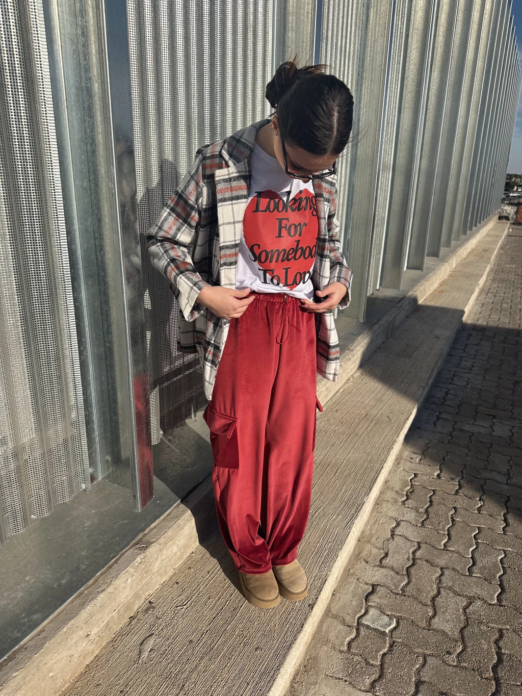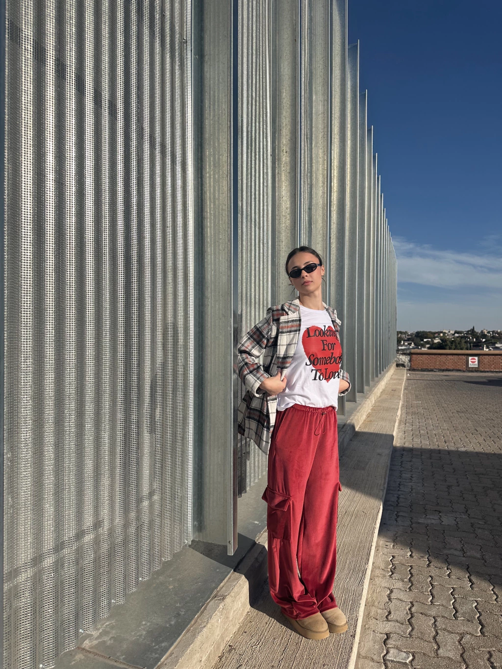 Pantalon tiro medio con bolsillos cargos laterales, bolsillos delanteros, elastico en cintura y tanca para ajustar.